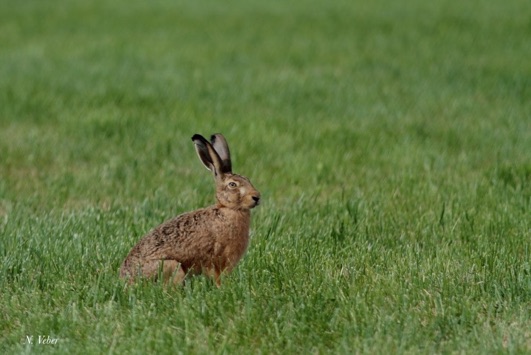 Autrefois il peuplait la Plaine du Bischwald en très grand nombre. Aujourd’hui, il se fait assez rare, même si on peut considérer que globalement il se «porte bien». Contrairement à certaines idées reçues, ce n’est pas la chasse qui est à l’origine de son déclin. C’est plutôt les changements de mode d’agriculture qui ont raison de lui. Les remembrements successifs on fait de la plaine, une vaste étendue, dans laquelle il n’y a preque plus de bosquets ou de haies pour qu’il s’abrite. Les dernières prairies sont retournées pour être transformées en terres de culture... Dans ces conditions, notre lièvre a bien du mal à s’abriter et à protéger sa progéniture... Pour le reconnaitre, il a les pointes des oreilles noires, contrairement au lapin, dont les pointes ne sont pas «teintées»...